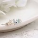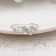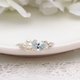 这是一款以海蓝宝石为中心,搭配淡水珍珠与白水晶点缀的线戒。