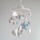 This baby mobile has a loop at the top and can hang from a hook in the ceiling or from a crib mount.