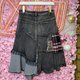 OTT独一无二•Unique日系超重工洗水牛仔拼布蕾丝刺绣格仔裙
