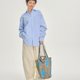 · 可单肩背和手提,长肩带让造型更松弛,也很方便挂在肩上打开袋口
