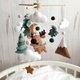 Winter coniferous forest baby mobile for the newborn with cute moose, fir, mountain and many leaves is great present for a baby or for a baby shower.