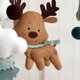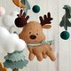 - Winter coniferous woodland nursery crib mobile for the newborn with cute moose, fir, mountain and many leaves. Forest animal - the main mobile hero - can be changed. Personalization - the baby name can be embroidered on the cloud or mountain.