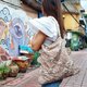 Pastel flower shape tote bag can be both carried and shoulder bag. Comes with the brand's signature flower petal design. chiffon strap make the look chic and unique. Strong strap because the inside is woven cotton tape.