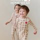 - 来自韩国的空气衣纯棉童装品牌-KIKISTORY 格纹米驼爱心-舒棉云柔衣长袖韩国童装-K52909