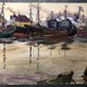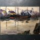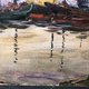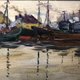 这幅画描绘了宁静的港口景色,几艘船停泊在那里,它们的倒影在水面上轻轻荡漾。 Hertsenok 对水彩的运用为作品带来了一种精致、近空灵的质感,柔和的色彩完美融合,让人联想到清晨或傍晚的朦胧氛围。这张构图捕捉了瞬间的静止,却暗示了港口内潜在的活动和运动。