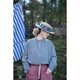 开门襟,没有明线,通过扣眼的方式固定,生动的朴感更加明显,再放一排有趣的进口纽扣,你细看纽扣,两种不同的蓝,还带着斑驳的生动感,每一料纽扣都像一副蓝调油画。落肩式长袖,袖口与领口呼应,用了密密线与太荷叶边边收口,清秀的柔美。