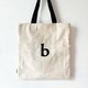 自选一个英文字母,a 至 m,全人手制缝线单行簿帆布袋。