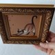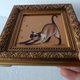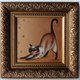 图片尺寸为 3.9*3.9 英寸(10*10 厘米)。这只猫是在金色背景的纤维板上用油画颜料画的。镶框。
