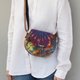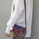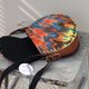 这款手工制作的镶嵌袋由部落印花帆布和合成革制成。结构化的皮革主体与青铜色调的金属饰钉一起制作。