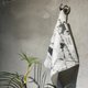 小方巾图案面为二重纱,背面为薄款毛圈材质,双面布料手工车缝结合,亲肤柔软,可随身携带,也可当家事巾,贴心缝上挂耳,方便吊挂晾干。