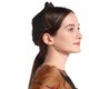 这顶“耳朵帽”, 唯一,俏皮。是用黑色金丝丝香云纱塑造的。可以用黑色的小卡子固定在头发上。