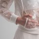 上衣由轻薄的蕾丝及纱制成,加上3D雷射贴花,营造出优雅的透视效果
