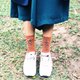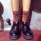 ▲XX Socks/手工绑上一条跳色的麂皮绳,穿梭在袜子的织纹之间,结成不同于平面设计的立体感
