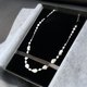 这款长项链结合了闪耀的白珍珠、银色珍珠与金属珠饰。