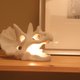 - T-bone挑战了水泥较难以实施的篓空设计,让温润的水泥与凶猛的恐龙融合在一起;龙骨特殊的篓空设计使灯光透出时,会映照出美丽的光影变化。 电压为110V,开关可以依照需求自由调结光的亮度。