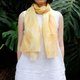 Like the autumn leaves, the cottonsilk fabric is crisp and lightweight. Curl the soft fabric around your neck and watch the gentle leaves gather at the two ends of the scarf.