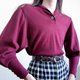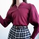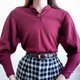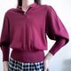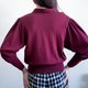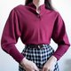 复古酒红色泡泡袖套头针织衫