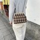 / 材质 / 古铜色口金,毛呢布,布衬,铺棉,斜背带(包含龙虾鈎)总长117cm,手挽长度41cm(含鈎扣),真皮部分宽1.5cm(为头层皮非二层皮),若想增加链子长度,请联系设计师。