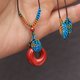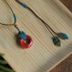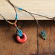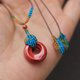 朱砂平安扣17mm*7mm+原创手工编绳(千里江山色系)