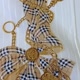 这款复古手帕采用优质棉丝混纺制成,触感柔软轻盈。缀有典雅印花,经典的棕色格纹缎带宛如流动的蝴蝶结,并饰以迷人的金色调图案——包含奖章装饰、锁链链接及精致的装饰坠饰。边缘以细致的卷边处理。无论是自用或作为贴心礼物,都是一件令人喜爱的单品。♡