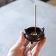 纯黄铜双耳三足香炉,传统型制,小巧精致。表面做旧包浆,手工烧蓝与棕染。搭配九孔黄铜香插,满足多样化线香需要。