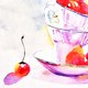 Watercolor Original Fruits Art Cherry Roome Decor Painting Still Life Artwork