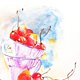 Watercolor Original Fruits Art Cherry Roome Decor Painting Still Life Artwork - 海报/装饰画/版画 - 纸 多色