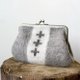 传统花布“ 氆氇 ”有许多彩色条纹与十字图腾,藏族人们拿来装饰在藏袍袖口与领口。我们取用了条纹与十字,与毛毡材质揉合,手工搓揉成一个藏式风情的口金包。