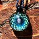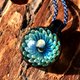 是用boroshirikeitogarasu这个氧抗热玻璃燃烧器溶化,装入人工蛋白石,用手工作制造的玻璃吊坠。