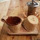 ✎饼干咖啡杯x1(咖/白)、原木杯垫x1与咖啡匙x1 ☻
