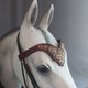 Handmade Leather browband for horses with silvered metal decoration. Red brow band horse pony made of genuine saddlery leather. Browband stitched on the hand. Trim sewn by hand.