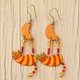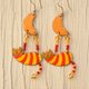 Orange Cat Earrings, Enamel Earrings, Orange Moon and Cat, Enamel Jewelry,