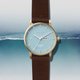 天鹅蓝表面搭配棕色瑞典有机皮带配色