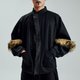 此和风外套以流苏绑带作为打合方式,内刷毛的布料手感细致温暖,衣型设计由和服外套作为设计延伸,剪裁舒适特别。