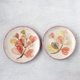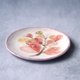在略带粗糙的白陶土表面施以白色化妆泥,并在其上描绘令人联想到秋日红叶的图案。这是一只拥有如水彩画或素描般淡雅图纹的盘子。