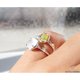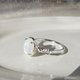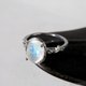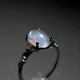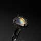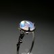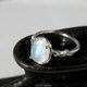 将色彩鲜艳的彩虹月光石,镶嵌于唐草纹雕饰的纤细戒环上。