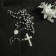 这是天主教念珠项链,通常称为“玫瑰念珠”(Rosary)。这是一种用来在祈祷时计数的珠链,尤其是在念诵玫瑰经(Rosary Prayer)时使用。主要用途是帮助信徒在祈祷时计数和集中精神。每颗珠子都代表一个“圣母经”(Hail Mary),而每组十诵之间的大珠代表一个“天主经”(Our Father)或“荣福经”(Glory Be)。