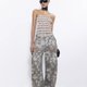 网纱上铺满英文字母印花,字母图案的随机布局与色彩形成鲜明对比,既充满现代感,又突显个性。