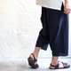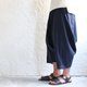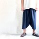 - 这款宽裤的版型 是参考少数民族“栗僳族” 的传统服饰修改设计而成 中间特殊的自然垂坠跟低裆的设计 轻松营造出宽松自然的风格