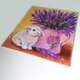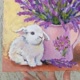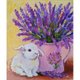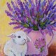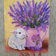 A picture with a purple bouquet and a white animal will decorate a girl's room, a Provence-style kitchen, and will be a wonderful original gift to your friends.