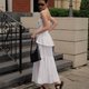- ——露肩衬衫,简约优雅,但同时又暗藏酷感又性感。 —裙子由 2 层布料制成。喇叭形下摆增加甜度