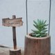 商品包含一个木盆器、一个木插牌和一盆一寸多肉。