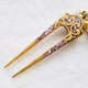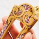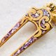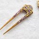 雕花木质发叉,缀以紫丁香色宝石。 材质:木材、树脂、宝石