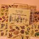 以复古的赤牛皮纸为底,适合贴在牛皮纸、信封、纸袋、甚至是菜单上作运用。