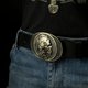 “印第安酋长”是美国 5 美分镍币的俗称,该镍币于 1913 年至 1938 年间铸造。其正式名称为“水牛镍币”或“印第安头像镍币”。1935 年的年份仅是该镍币的铸造年份之一。此皮带头描绘了原住民的侧脸轮廓,象征着原住民的文化传承与历史。