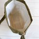 这是一款使用11号仓敷帆布制成的月牙形肩背包。