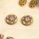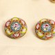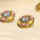 - 意大利传统工艺古董,手工微镶马赛克,蓝底粉花,红黄饰边圆形耳夹、夹式耳环