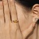 灵感来源自在纽约逛美术馆时,时常看到古文物中有像波内戒指一般优雅、流线线条的戒指,我们制作后把它镶入闪亮的玻璃钻。