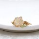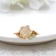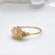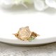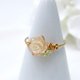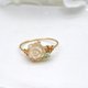 将珍珠母贝雕刻成一朵玫瑰,制作成铜线戒指。