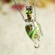 Is a pot type of pendant, such as a drop. On the surface, it has been made a pretty flower and green of the flow in the white. Lid rose charm is decorated in, plug because it has become so firmly closed with a cork material, you can put your favorite perfume and aromatherapy oil. In the middle of the chain, it is with cut beads that shimmer shine sparkling.